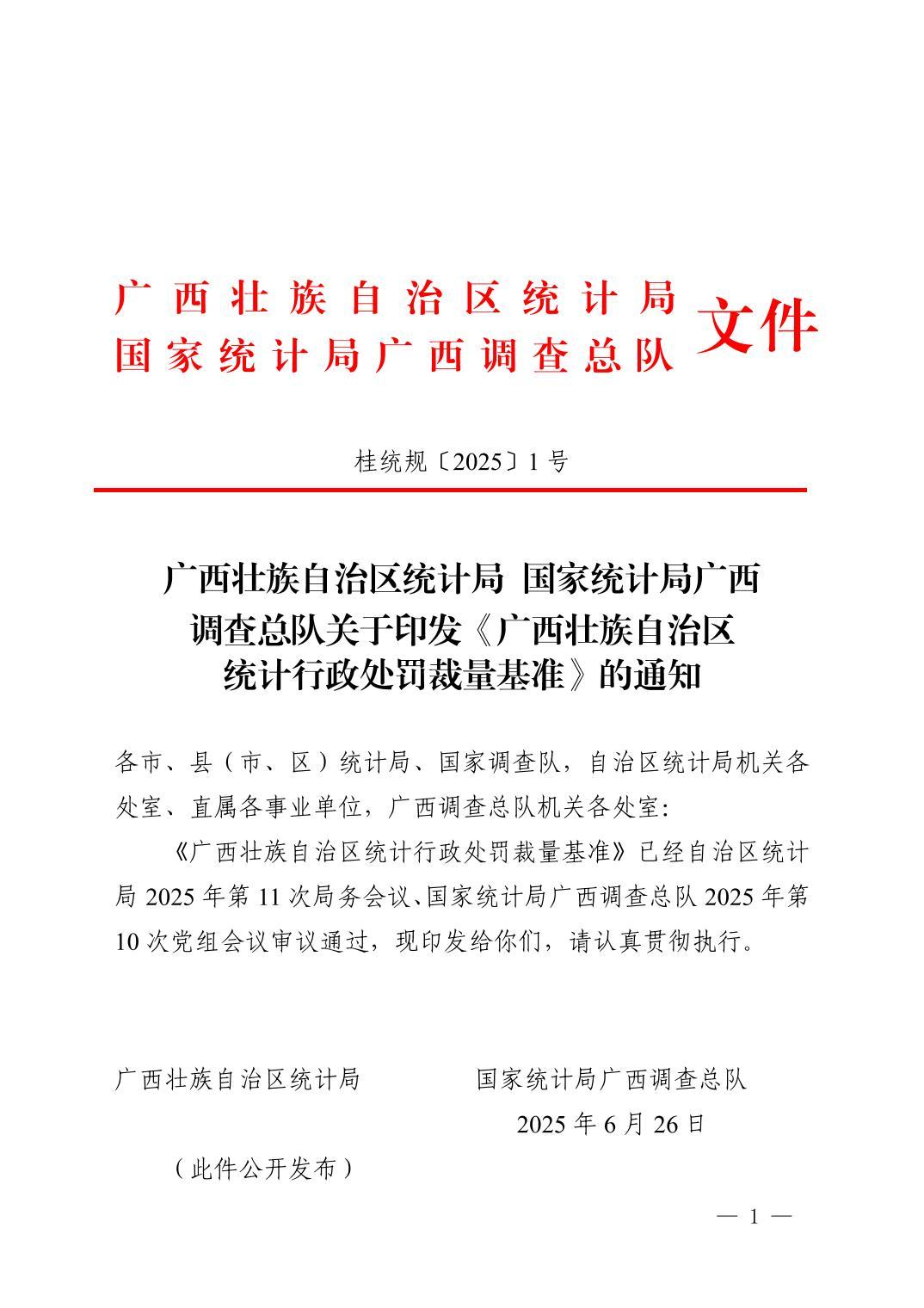 广西壮族自治区统计局 国家统计局广西调查总队关于印发《广西壮族自治区统计行政处罚裁量基准》的通知